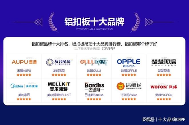 OULU欧陆专注于生产高品质的铝扣板产品,其产品以时尚设计和高性能而受到市场的欢迎。OULU的铝扣板不仅具有隔音、抗油污、抗腐蚀等性能,还拥有独特的外观设计,适合现代家庭和商业空间的装饰需求。公司特别强调环保理念,采用可持续发展的生产工艺,减少了对环境的影响。通过不断的技术创新和服务优化,OULU在铝扣板市场上树立了良好的品牌形象。铝扣板十大品牌4:欧普OPPLE欧普是全球领军的照明和家居装饰品牌之一,其铝扣板产品同样以高品质和多样化著称。欧普的铝扣板产品结合了公司在光学方面的专业技术和美学设计理念,其产品具有优异的光反射率,可以有效提升室内的亮度,营造出明亮舒适的居住环境。铝扣板十大品牌5:楚楚顶墙楚楚顶墙专注于为家庭用户提供高品质的铝扣板吊顶及墙面装饰方案。其铝扣板采用了优质的铝合金材质,具有轻质高强、耐腐蚀的优点。此外,品牌还非常重视细节处理,从板材的切割到拼接都严格把控,保证了最终效果的完美呈现。铝扣板十大品牌6:美的家居美的作为中国家电行业的领军者,其铝扣板产品选用了高强度铝合金材料,具备良好的抗压性和稳定性。此外,美的家居的铝扣板能与智能家居生态系统联动,实现家居智能化管理,且注重用户体验,提供易安装、易清洁的设计,极大地方便了用户的使用。铝扣板十大品牌7:美尔凯特MELLKiT美尔凯特专注于提供高品质的铝扣板产品,其铝扣板采用了精湛的生产工艺和优质的原材料,注重环保和抗菌、防霉等功能,设计上简约而不失格调,满足健康家居的需求。品牌强调个性化定制服务,可以根据客户需求量身打造专属的铝扣板设计方案。铝扣板十大品牌8:巴迪斯Bardiss巴迪斯是一家国际知名的建筑装饰材料供应商,其铝扣板产品广泛应用于住宅、商业和公共建筑领域。品牌的产品以高质量和多样化的设计而著称,能够适应各种复杂的安装环境。此外,品牌还推出了多款具有特殊功能的新品,如抗菌防霉、自洁涂层等,进一步增强了产品的附加值。铝扣板十大品牌9:法狮龙Fsilon法狮龙是一家老牌建筑材料制造商,其铝扣板产品融合了欧洲的设计美学与前沿技术。法狮龙特别强调产品的环保性能,所有原材料均选用可回收或低污染物质,符合现代社会对可持续发展的要求。此外,品牌还不断推陈出新,推出了一系列节能环保型铝扣板,受到了市场的积极响应。铝扣板十大品牌10:武峰WOFON武峰专注于生产高品质的铝扣板产品,其产品以经济实惠、性价比高而受到市场的欢迎,在市场上表现不俗。武峰的产品线覆盖全面,包括多种规格和功能的选择,能够满足不同层次客户的需求。品牌注重产品质量管理,建立了完善的检测体系,确保每一件出厂品都是精品。